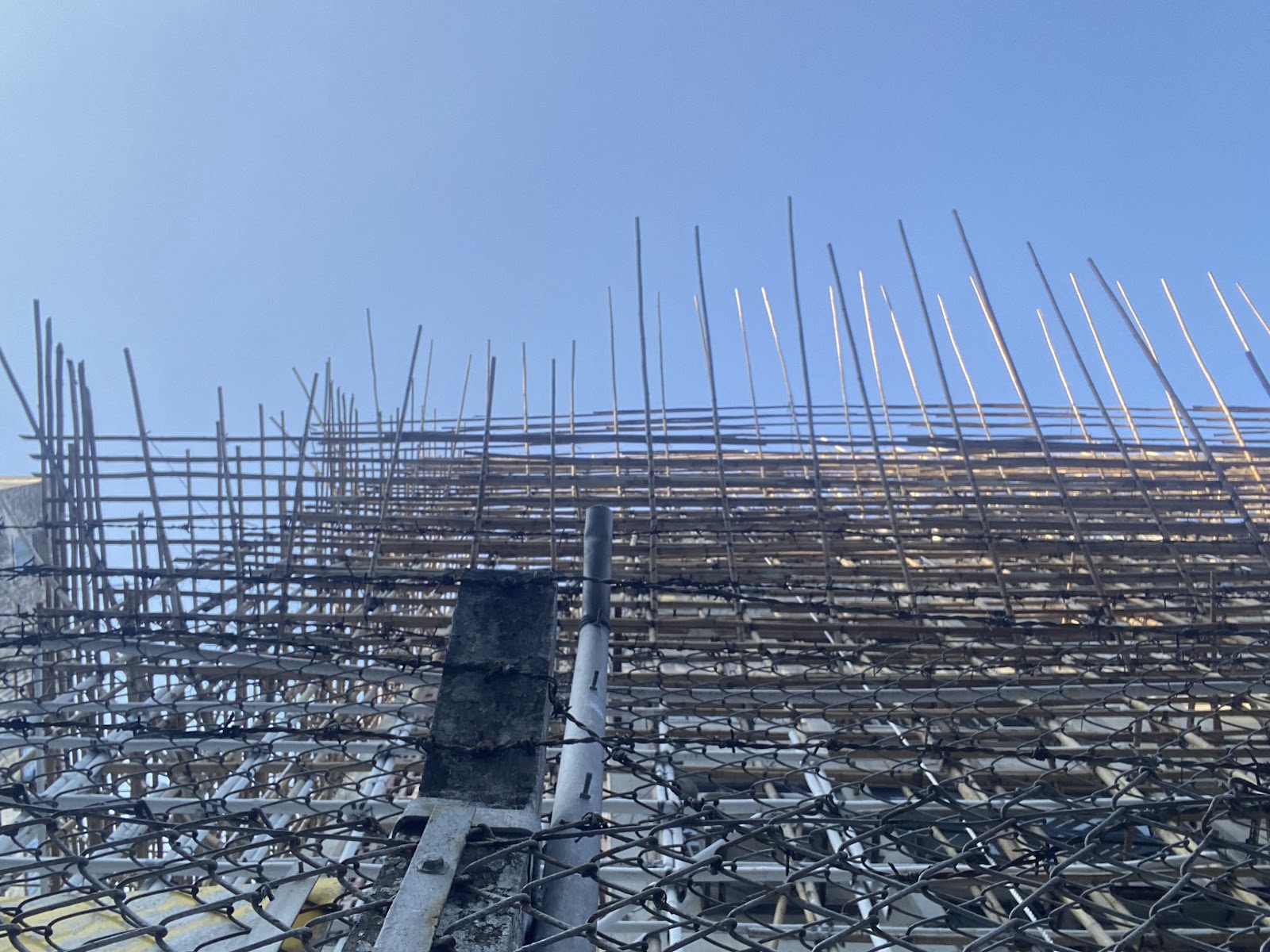 After an hour and half of chatting at Floating Projects, we went out for a short walk around the neighbourhood. Still chatting along the way. We went to the building with bamboo scaffoldings, which was a curious sight since we first came to JCCAC earlier this week. We went to a residential building with food stalls. Had a little snack. Then when to the playground for a HK tourist favourite photo.