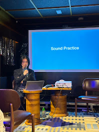 While dinner was still happening, Brandon did his presentation, introducing the Listening Biennial-- how it came out of his experience during the pandemic, how listening (of various forms) help him process the days. I didn't manage to get any photos because I was also observing the live speech caption (which something I am researching to aid our teaching in UP of students who are hard-of-hearing or deaf, just before I came here). Every time Brandon addressed me to mention something or add something to what he's showing, I obliged. Now I realised I should have just said he can go ahead. This turned out to be a trigger to make the anxiety cloud thicker as the night progressed.